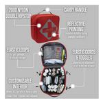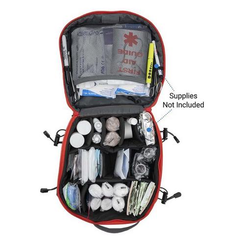 The Large First Aid Carrier allows you to carry enough first aid supplies for several people. The unique attachment system allows it to be securely attached to the outside of your backpack and eliminates the annoying swinging and knocking of other hanging kits. It also ensures that the carrier will be readily accessible when an emergency occurs without having to dig through or empty your pack to have access to those supplies. The pack can even be opened and supplies used when the carrier is attached to a pack that someone is still wearing. The light reflective printing on the cover and sides provides greater visibility during low light conditions. These features are packaged in a carrier that weighs only 11 ounces. Unlike prepackaged kits, you get to determine what supplies you will need for your adventure and how you will pack them, thus eliminating paying for unnecessary supplies. While hopefully you will never need medical supplies, it is reassuring that if you do, you will have quick, easy access to them.