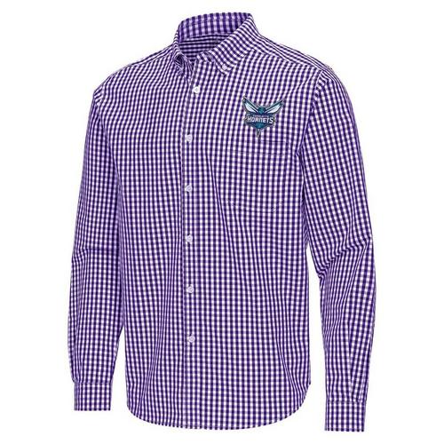 Antigua Charlotte Hornets Ellis Woven Long Sleeve Button Up