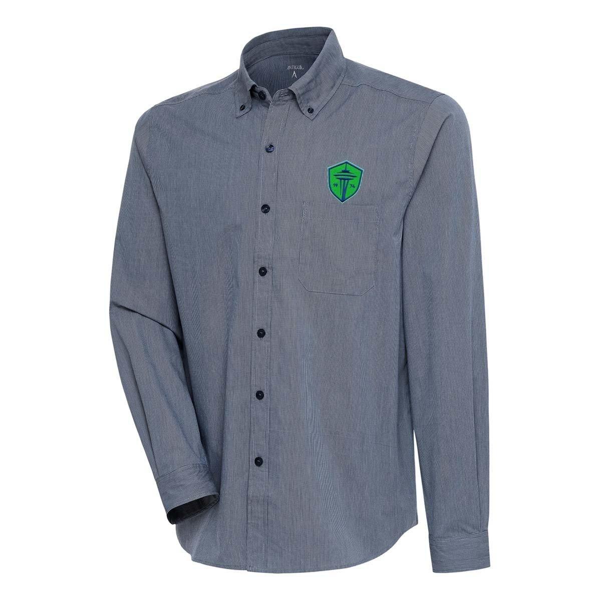 Antigua Men's MLS Seattle Sounders FC Chest Logo Compression Button Up