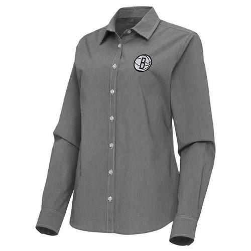 Antigua Women's Brooklyn Nets Porter Woven Long Sleeve Button Up