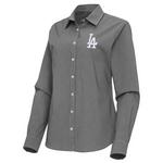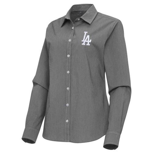 Antigua Women's Los Angeles Dodgers Woven Porter Long Sleeve Button Up