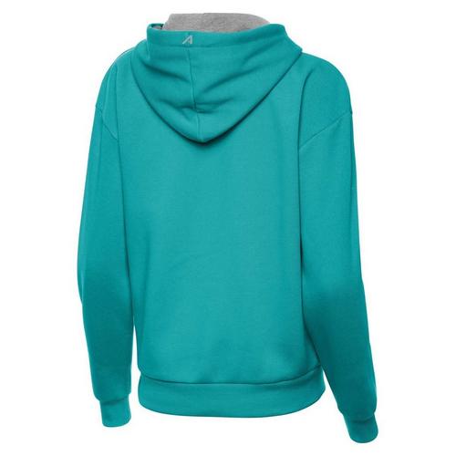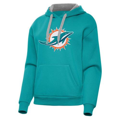 For an extra layer when the temperatures drop, wear the Antigua Women's Miami Dolphins Victory Hoodie. With Miami Dolphins colors and graphics, you’ll be able to show off your team pride throughout the entire season and year. Made with soft fabric, you’ll stay comfortable throughout the whole game in the Antigua Women's Miami Dolphins Victory Hoodie.