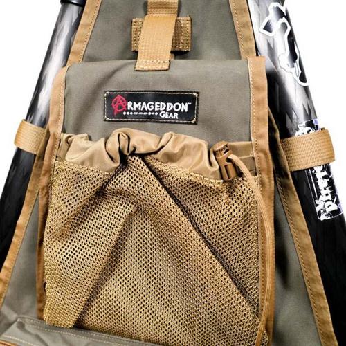Designed by AG pro staffer Francis Colon, the Armageddon Gear Tripod Caddy provides you a convenient way to keep your match essentials close at hand. There is a spot for everything you might need on this awesome piece of gear. Kestrel, data boards, pens, match book, magazines, water bottle and even snivel gear. The convenient fold-down workspace provides a rigid surface to take notes and keep up with your score or record data. Perfect for shooting the match and especially useful for the Range Officers. Weighs 1lb 3oz. Made in the USA, RLTW!