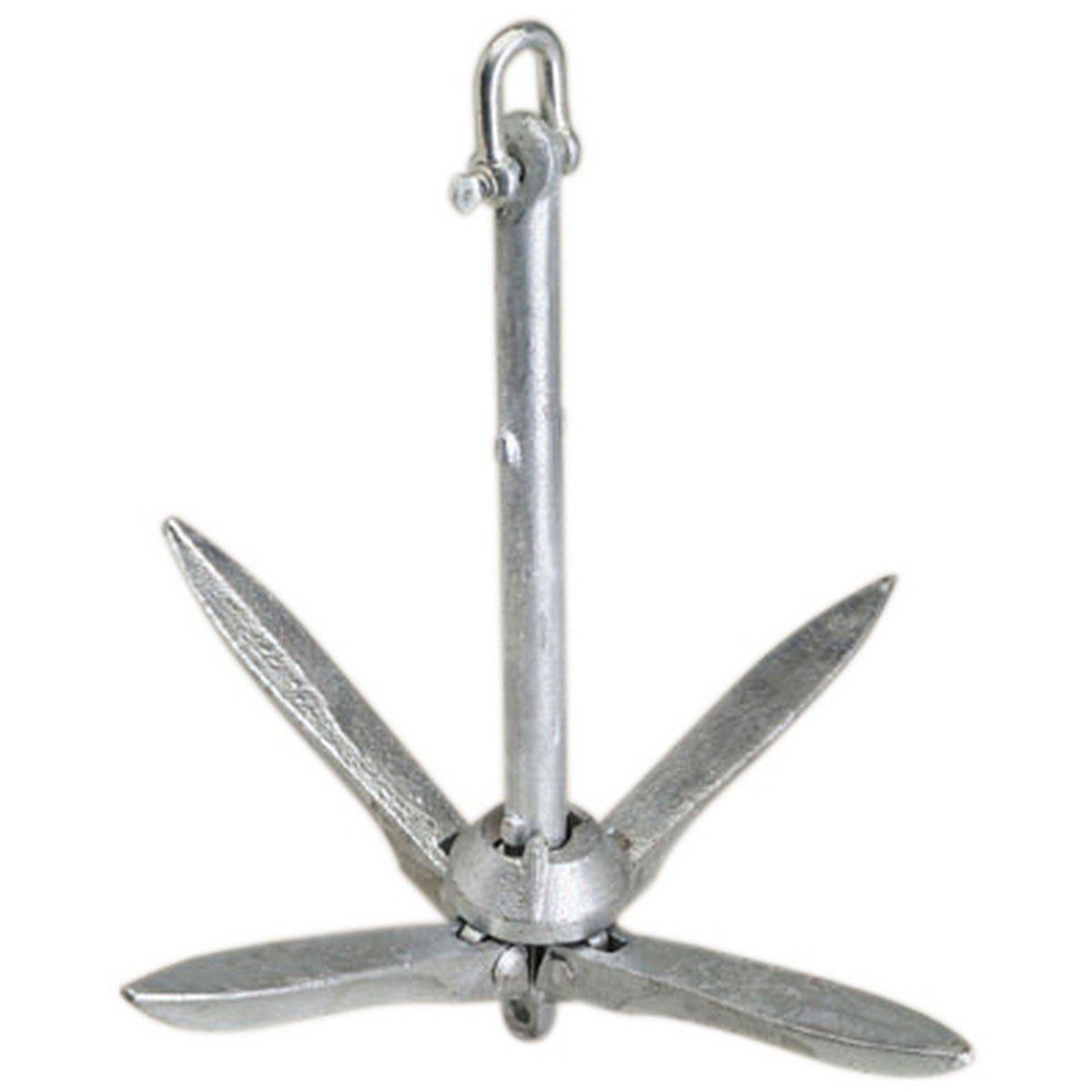 Ideal four-fluke anchor for personal watercraft (PWC), small craft, and dinghies. Heavily galvanized, malleable iron. Folds up easily for storage. Lockable in opened or closed position. Weights: 3 lbs.