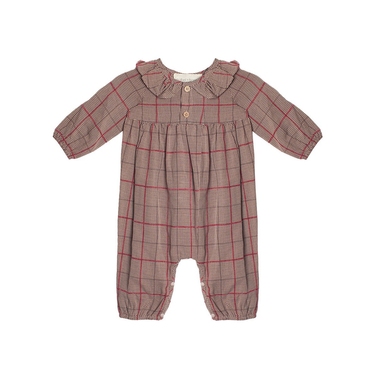 The Hazel Romper combines a peter pan collar and empire waistline for a stylish touch. The front button detail sprovide both decoration an dfunctionality, making dressing a breeze.