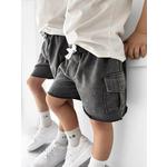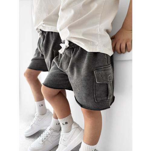 These Kids Raw Edge Cargo Sweat Shorts in Black are the perfect combination of comfort, style, and functionality. Crafted with a ribbed elastic waistband and a functional sewn-in drawstring, these shorts provide a secure and adjustable fit for active kids. The two side cargo pockets offer plenty of storage space for small essentials, while the fixed raw edge bottom hem adds a trendy, laid-back look. Perfect for casual days, outdoor play, or relaxed weekends, these shorts are a must-have for every little wardrobe.