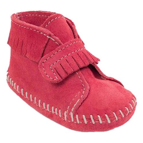 The super soft suede and fully padded insole are so comfortable that your child will never want to take them off. When they finally do come off, the Velcro® strap will make it ultra-easy. The durable soft suede sole protects little toes while the front strap holds the foot for a perfect stay-on fit.