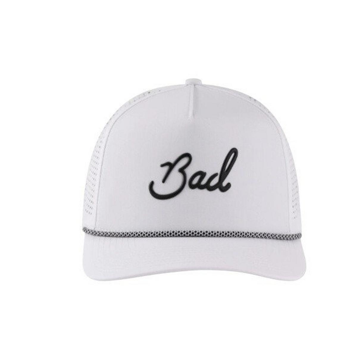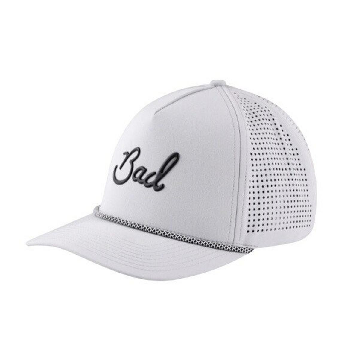 Our iconic hat gets a technical upgrade with laser-cut perforated back panels that deliver superior ventilation when the pressure's on. Featuring a structured front crown for a clean look, bold rubber Bad patch for subtle flex, and our signature rope detail that says "yeah, we know style matters on the course." The perfect blend of performance engineering and statement-making design for players who aren't afraid to stand out while they dial in.