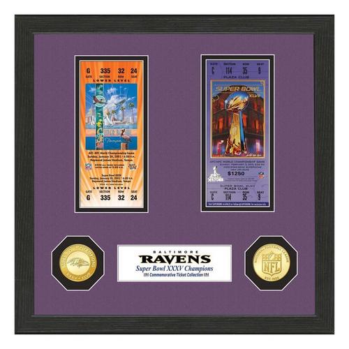 Proudly display your Baltimore Ravens spirit with the Baltimore Ravens SB Championship Ticket Collection. Whether you’re a collector of all things Baltimore Ravens or want to display your pride, this piece of Baltimore Ravens memorabilia will help you do just that. From the home to the office, this NFL collectible will help you show off your team pride. With the Baltimore Ravens SB Championship Ticket Collection, no one will doubt your favorite NFL team.