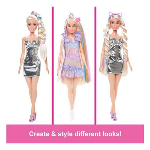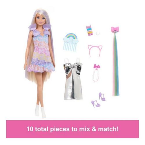 The Barbie Fun & Fancy collection features cute dolls modeling colorful hairstyles and glam looks! Each doll has 8.5 inches of extra-long playable hair and includes 10 total fashion and styling accessories. Kids will love creating different hairstyles and exploring outfit possibilities! Each sold separately, subject to availability. Dolls cannot stand alone. Colors and decorations may vary.