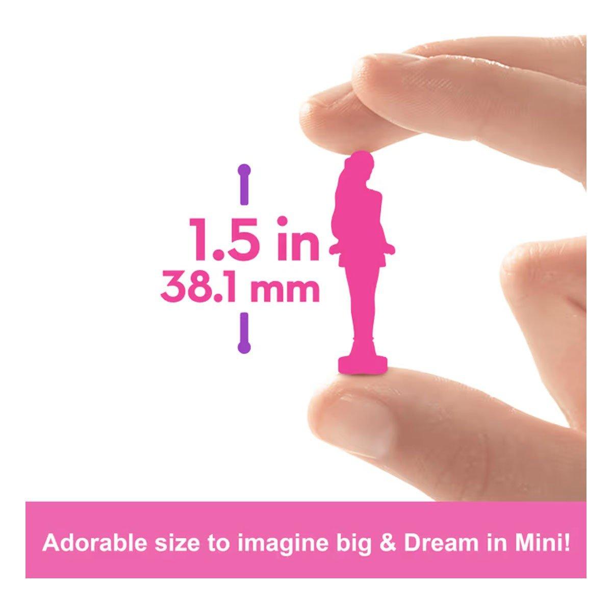 Enter the world of Barbie doll with Mini BarbieLand -- a place to imagine big and Dream in Mini! With Mini BarbieLand Color Reveal dolls, there's big unboxing fun and a teeny surprise. Open the small tube, pull out a mini doll covered in a colorful coating, then use water as directed to see the doll's look -- so easy! Which doll will you reveal? Each 1.5-inch doll bends at the waist and stands on a heart-shaped base that fits into Mini BarbieLand playsets (sold separately). Also use the mini packaging tube to store the doll. Fans ages 4 years and older will want to collect all these cute dolls to build their own mini world! Each sold separately, subject to availability. Colors and decorations may vary.