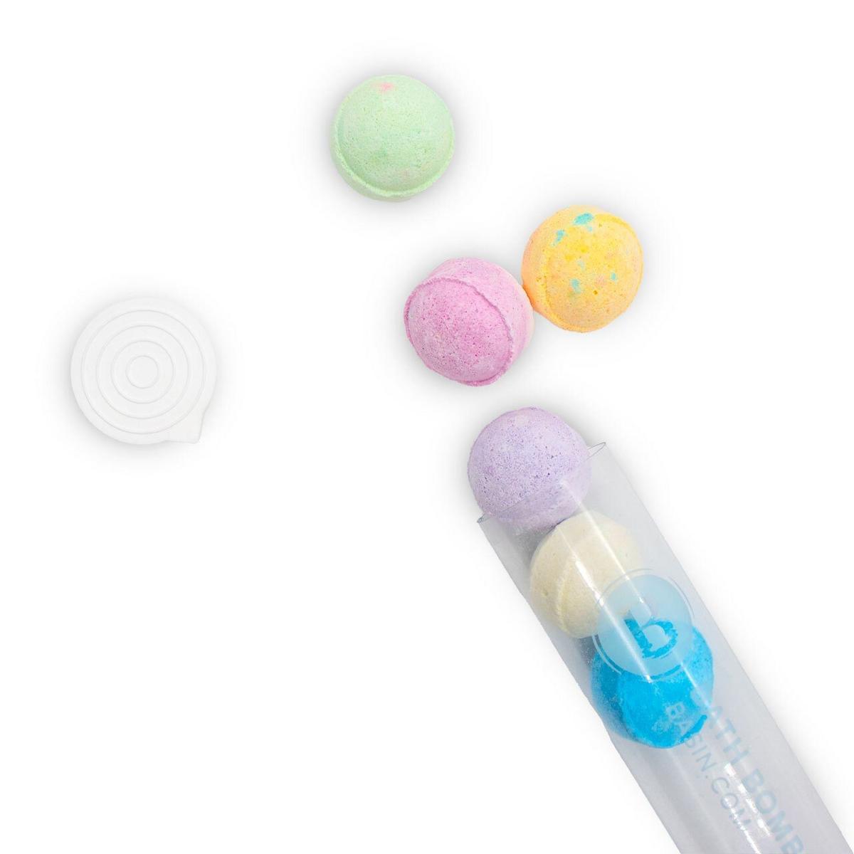 Bath bomb marbles are just like large bath bombs, but mini! Use one or many for a fun and fragrant bath. Made from four simple ingredients designed to add color and fragrance to bath water while softening skin. This assorted bath bomb marble tube comes with 6 of our most popular fragrances, try them all!