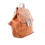 Where craftsmanship meets creativity—this backpack stands out with its striking handwoven detailing and soft, slouchy silhouette. Bold, woven fringe accents cascade down the front flap, giving it texture and movement, while wide, stitched shoulder straps ensure comfort and support. This backpack is a statement piece made to carry more than just the essentials.
