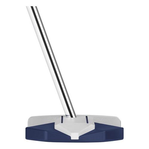 • Mallet putters have a larger head design with more perimeter weighting for a bigger sweet spot and added forgiveness. They are a good option for golfers with a straight-through putting stroke or beginners.