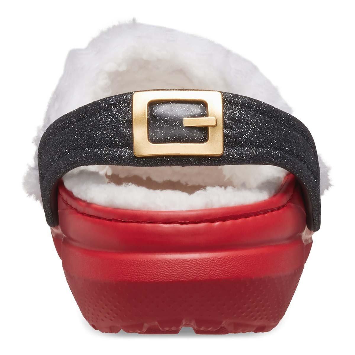 Ho, ho, ho! Featuring a jolly red color, fuzzy white collar and lining, plus a backstrap that mimics Santa’s Belt, these festive shoes help you show off your love for Santa and the holidays. The warm, fuzzy liner adds to the cushion and comfort, and Croslite™ foam construction keeps them light and easy to wear. Grounded in comfort, spiked with personality.