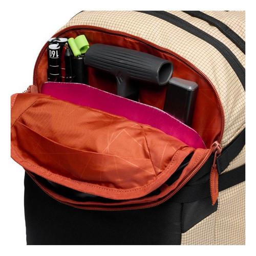 The front snow safety pocket stores your avalanche safety kit, and an oversized insulated shoulder pocket holds a hydration tube, soft flask or radio. The pack’s form-fitting suspension provides a contoured, body-hugging fit, while the zippered back-panel access provides easy entry. Large hip-belt pockets are purpose-built to store skins for the downhill, and exterior attachment points accommodate skis, snowboards, helmet, and piolets.