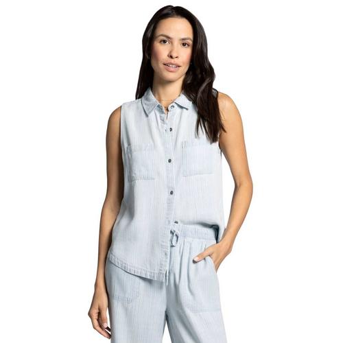 Easy and classic, this sleeveless top is featured in a super soft fabrication and dual patch pockets with a faded pinstripe throughout. Wear with the Blossom Pant to complete the matching set.