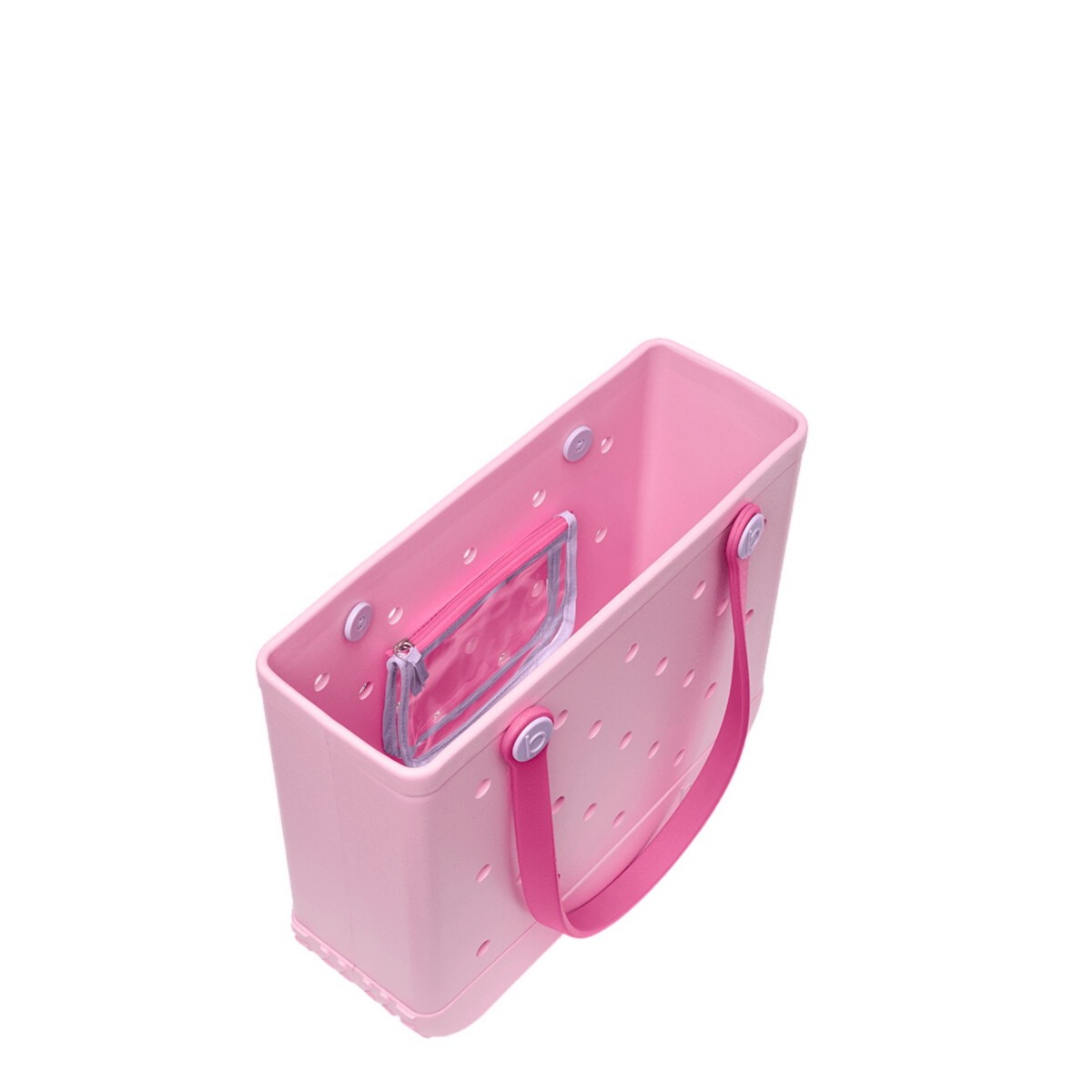 The Bogg Bag Small Tote is known as the Baby Bogg, but it's not too small. The Baby Bogg Bag is the perfect bag for carrying your essentials. Whether you're heading to the beach or window shopping, the Bogg Bag is sturdy, stylish, and even washable. The ribbed bottom keeps your Bogg Bag stable and upright, and the holes let the contents breathe and help you customize your Bogg. Get ready to show off your Bogg Bag Small Tote.