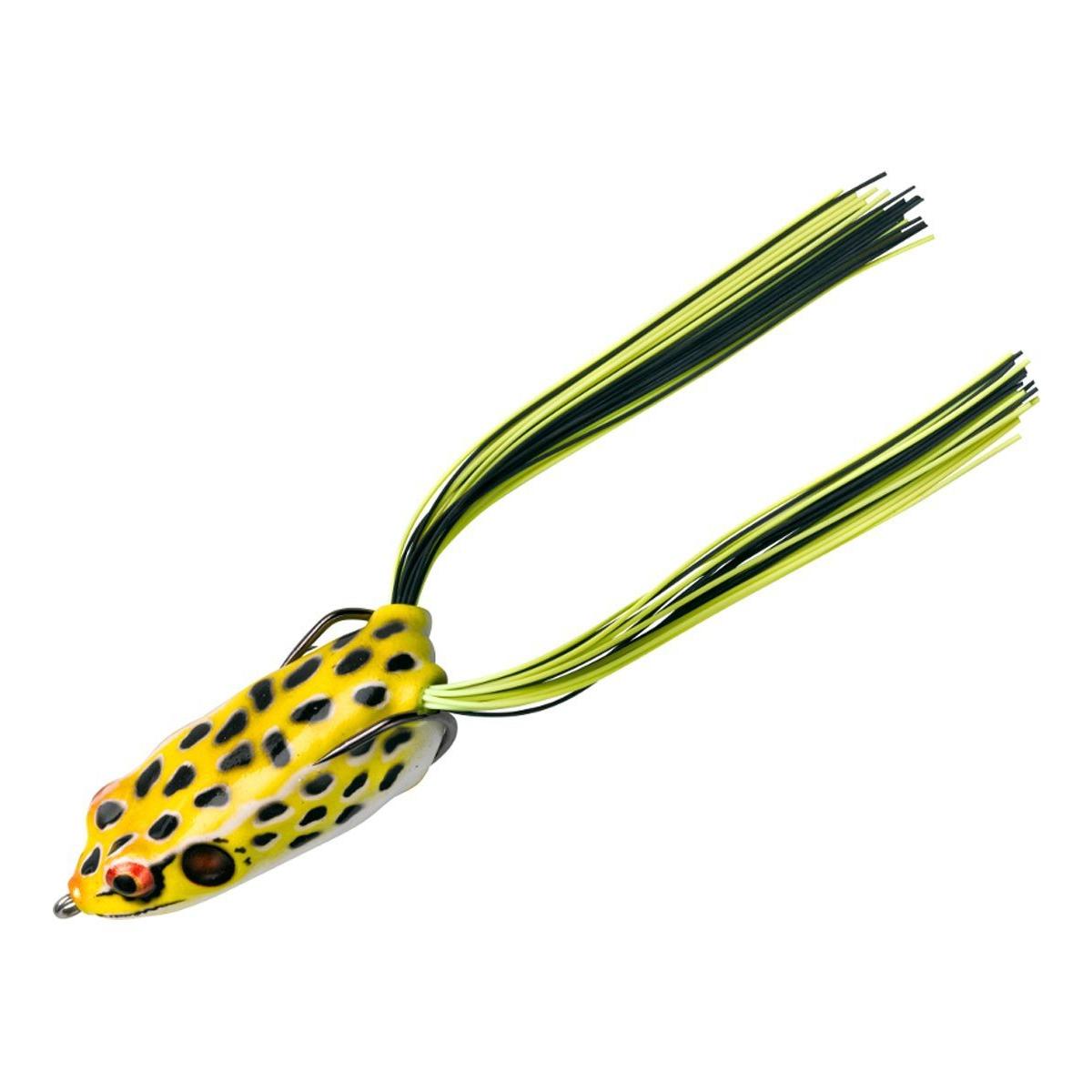 The BOOYAH Pad Crasher soft plastic hollow body frog features a plastic with just the right consistency to ensure solid, consistent hook-ups while remaining weed- and snag-free. The belly features 'chines' that make 'walking the frog' easy in open water, and it's just the right weight for pulling over slop or through the pads for big bass. Realistic decoration schemes and adjustable spinnerbait-style legs seal the deal for big bass. A drain hole at the tail of the bait keeps it working flawlessly.