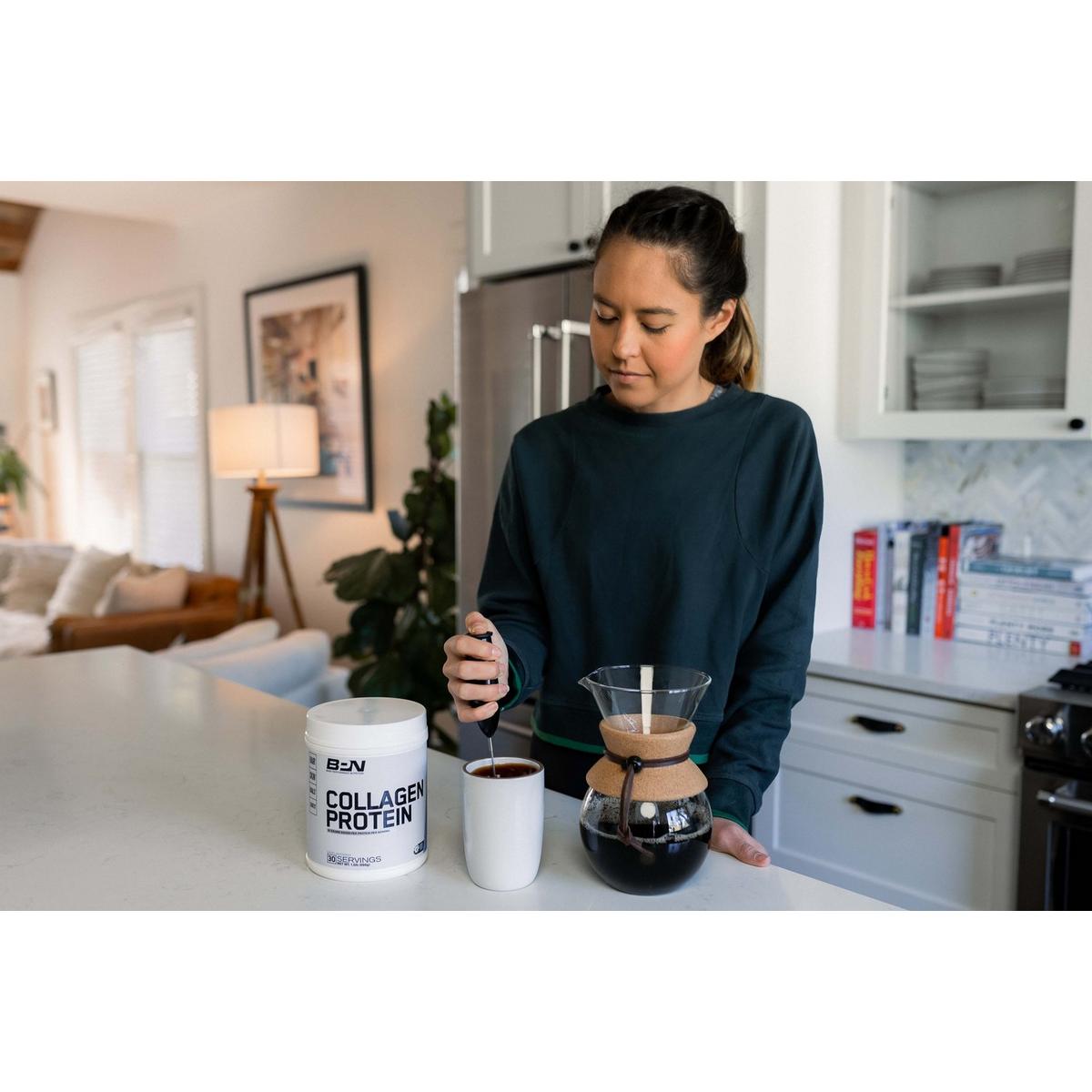 As we age, our bodies gradually produce lower amounts of collagen, leading to poor joint mobility, brittle bones, skin wrinkles, and weaker hair and nails. Collagen is the glue that holds our body together by strengthening our connective tissue and improving recovery. It is high in the amino acids glycine, proline, and hydroxyproline, making it unique compared to other protein sources and excellent for enhancing the durability of your daily wellness routine and performance goals.