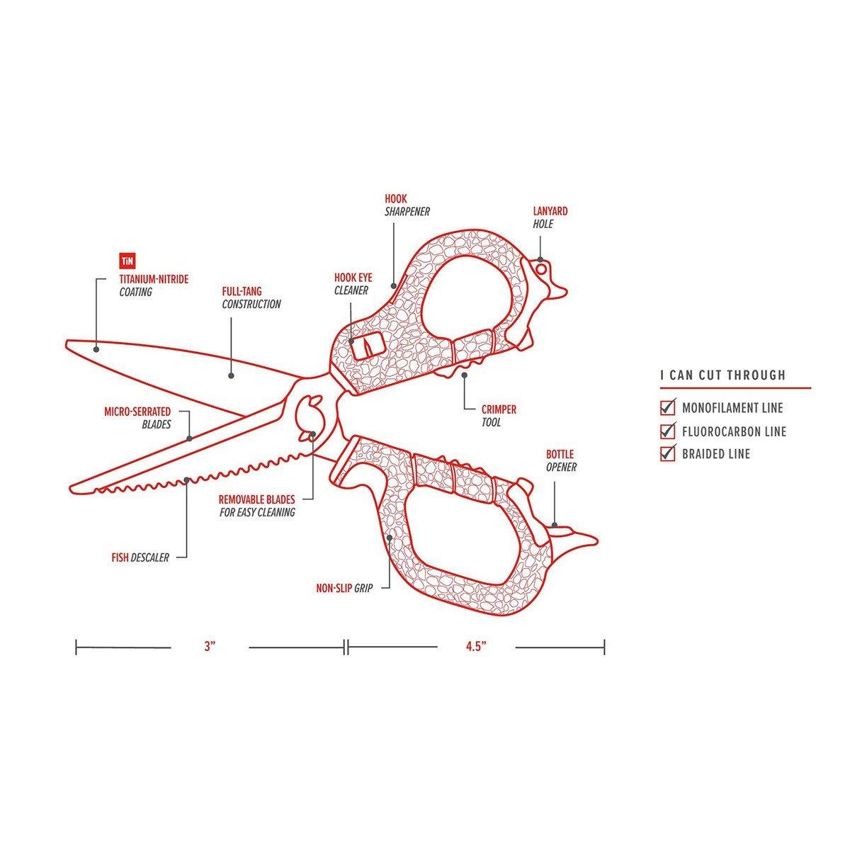 The Bubba Medium Shears are our most versatile shears within the Bubba shear family. They are engineered with micro-serrated blades to cut monofilament, fluorocarbon or braided line. The Medium Shears are extremely feature-rich and come equipped with a hook eye cleaner, hook sharpener, descaler, bottle opener, lanyard hole and even break down for easy cleaning. On top of all that, they come with our iconic, non-slip grip handles, truly making these the ultimate angling shears.