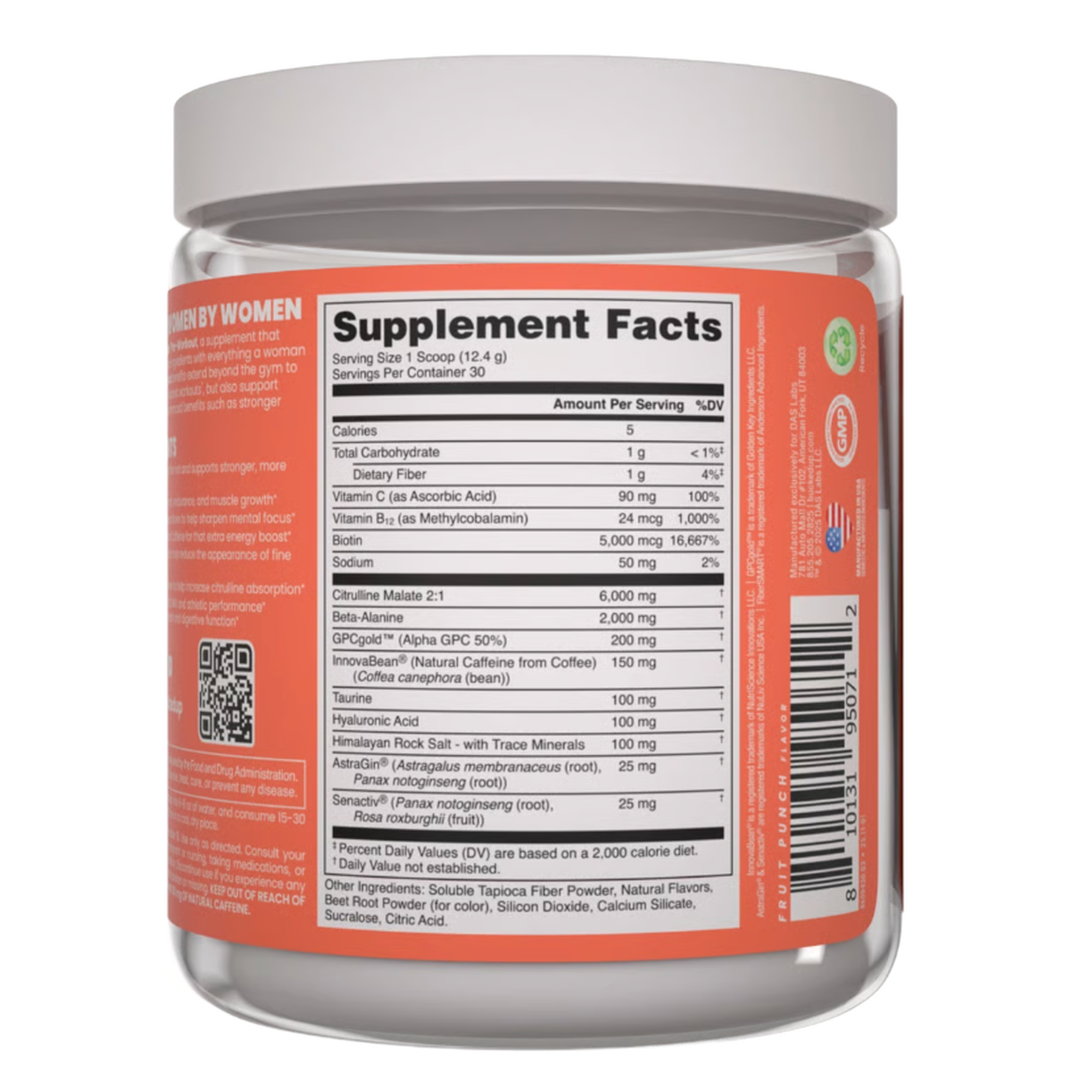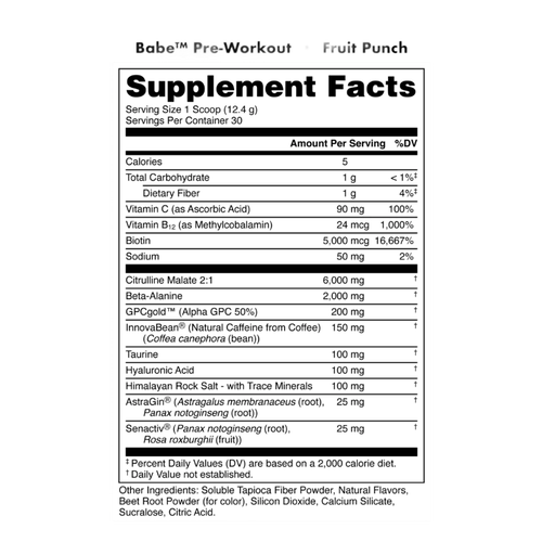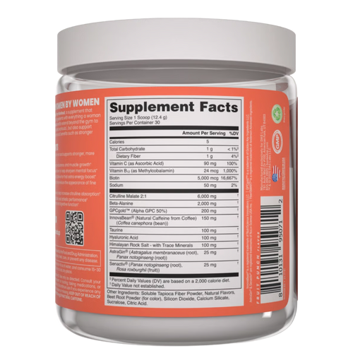 Babe Pre-Workout doesn’t stop there. Groundbreaking nootropics help increase your mental and physical stamina, empowering you to push yourself harder.* Beta-alanine helps to reduce muscle soreness and increase muscular endurance*, and biotin and Vitamin B12 form an incomparable duo to promote overall health.*
