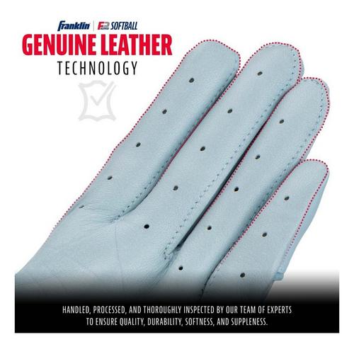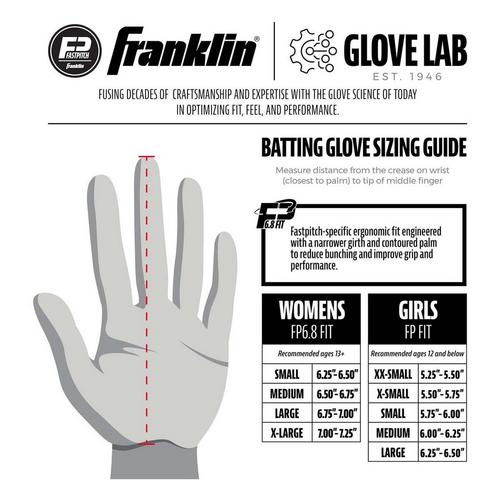 Franklin Sports is bringing its time-honored classic batting gloves to the world of fastpitch and slowpitch softball and changing the game for good with the all-new CFX FP - USA batting gloves. These are the first batting gloves from Franklin Sports to be specifically designed and built to fit the contours of the female hand so women and girls can enjoy increased comfort and performance at the plate. Constructed with the same premium quality leather as our CFX Pro model, the CFX FP is designed to bring the same level of performance exhibited by our MLB pros to softball diamonds across the country. As the official batting glove of USA Softball, the CFX FP is made to play at the highest level with unmatched durability to last season after season. Bring your softball game to the next level today with the glove built for you. Change the game and grab your pair of CFX FP batting gloves today!