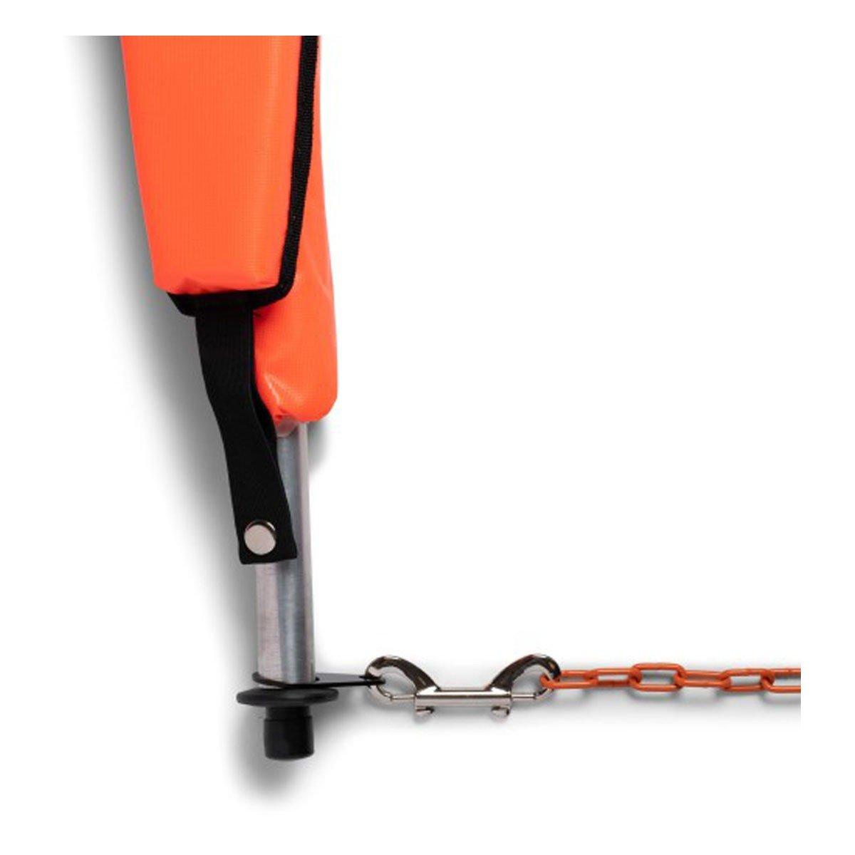 Grab the CHAMPRO Deluxe Set of Bull’s Eyes to easily track the offense’s progress. It includes two 15" foam bull's eyes on padded 7'6" poles with orange padded banners and an orange 10-yard chain with adjustable stainless steel clips. Fluorescent orange 10-yard chain with adjustable stainless steel clips helps give a quick, accurate measurement. The set’s bright orange colors make it easily visible from any part of the field. The pushpin connections allow the two pieces of the indicators to pop together and be ready for use in seconds. Available separately or as part of the CHAMPRO Deluxe Down Box and a Chains Set.