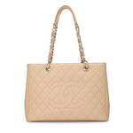 What Goes Around Comes Around Chanel Beige Quilted Caviar Grand Shopping Tote Shoulder Bag