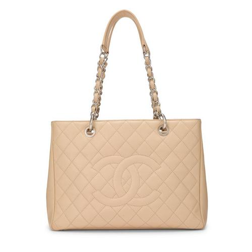 The Chanel Grand Shopping Tote in beige quilted caviar leather is a timeless, structured carryall designed for everyday sophistication. Featuring the iconic CC logo, durable caviar leather, and roomy interior, this classic silhouette balances elegance with practicality.