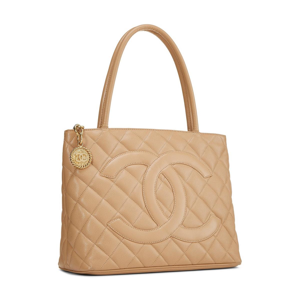 The Chanel Medallion Tote is a vintage classic from the 2000s that blends iconic Chanel design with everyday practicality. Crafted in diamond-quilted leather (Caviar), it features a large CC logo panel on the front and a distinctive medallion zipper pull, giving the bag its name. This structured tote offers ample space and effortless style — a refined choice for daily wear or travel with enduring luxury appeal.