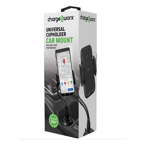 This Chargeworx Universal Cupholder Phone Mount is a must-have accessory for any car owner. It's the ideal way to keep your phone in reach and secure while you're driving. The mount is adjustable and fits most standard cup holders, so you don't have to worry about it not fitting your vehicle. It's designed to securely hold your phone in place with its non-slip rubberized grip, while also allowing you to easily access your phone's buttons, ports, and other features. It's perfect for hands-free calling, GPS navigation, audio streaming, and more. Plus, it's so easy to install, you can do it yourself in no time. Get yours now and never worry about where to put your phone again.