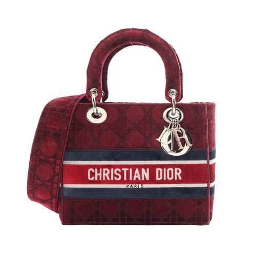 The Christian Dior Lady D-Lite Medium in rich burgundy velvet is an elegant reinterpretation of the iconic Lady Dior silhouette. Featuring a structured shape with soft velvet texture and signature Cannage quilting, this refined piece balances timeless sophistication with modern luxury.
