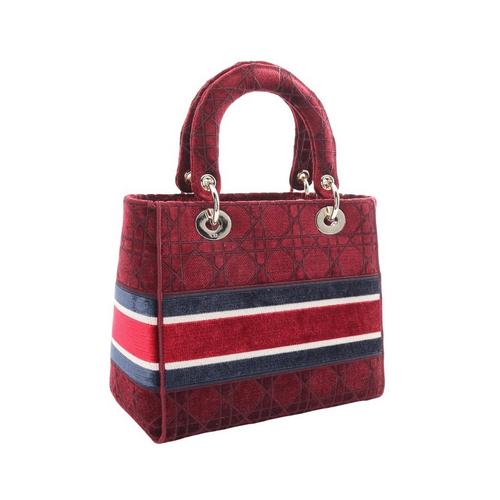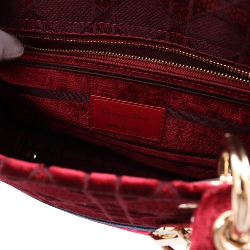 What Goes Around Comes Around Christian Dior Burgundy Velvet Lady D-Lite Medium Handbag