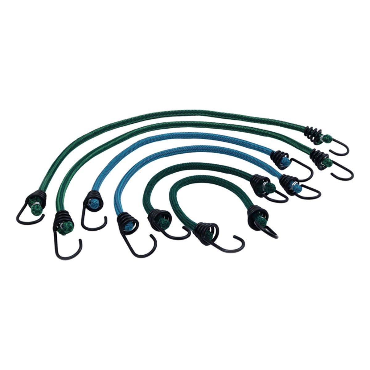 Coghlan's Bungee Cords are a versatile and reliable solution for outdoor enthusiasts and campers. The assorted multipack includes 6 cords in assorted lengths and colors, offering convenience and versatility. Each cord features a rust-resistant steel hook coated in PVC for added protection against corrosion and wear. The braided polypropylene used in the cords is UV-resistant and provides additional strength and durability, allowing it to maintain tension and elasticity. These bungee cords are easy to use and offer a secure hold for a wide range of tasks, from securing camping gear to transporting goods in your car. With their practical design and long-lasting construction, Coghlan's Bungee Cords are a must-have for any toolbox or gear kit.