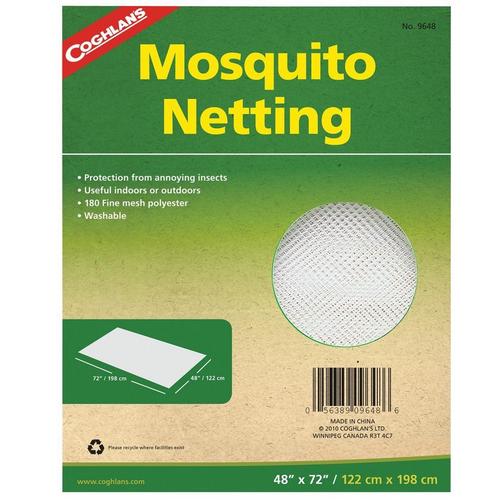 Coghlan's Mosquito Netting is a versatile and effective solution for protecting against pesky insects. With 180 holes per square inch, this lightweight and breathable polyester mesh allows for minimal disruption of view while providing maximum protection. Use it to create your own insect protection or to repair screens. It's even great for creating a mosquito barrier for kids' strollers. Measuring 48 inches by 72 inches, this netting is washable and suitable for both indoor and outdoor use. Stay protected from mosquitoes and other bugs with Coghlan's Mosquito Netting.
