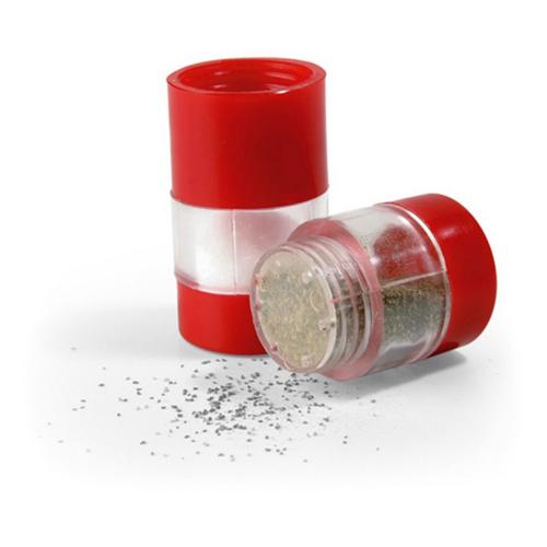 Keep salt and pepper where it belongs - in the shaker or on your food. Perfect for keeping in your trailer or RV year-round, this handy salt and pepper shaker features a removable bottom for easy refilling. This durable unit is ideal for travel to and from the campground thanks to its BPA-free plastic container and no-spill flip caps.