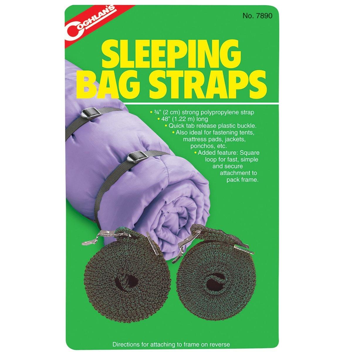 Keep your sleeping bag clean, compact, and easy to store when not in use with Coghlans Sleeping Bag Straps. These straps feature quick release buckles so you can adjust the tension required to keep your sleeping bag rolled tight. Each strap is 48 inches long allowing them to fit all sizes of sleeping bags. Simple to use, all you have to do is wrap each strap around your rolled sleeping bag and pull on the polyester straps to tighten.