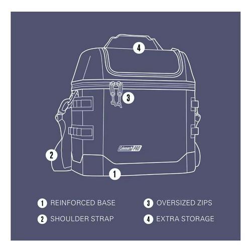 You work hard for your time off. You deserve gear that goes above and beyond. Meet the Coleman Pro series, designed for those who expect more. Combining on-the-go durability with go-anywhere flexibility, this 16-can soft cooler stays cold for up to 30 hours thanks to a fully insulated lid and body. Use its padded carrying strap to comfortably trek from backyard to beach to tailgate to sidelines, while the oversized zipper reduces snags and boosts long-term resilience. The antimicrobial liner helps prevent odor, mildew, and mold.* Best of all, these built-to-last features are backed by our 3-year limited warranty, so you can confidently bank on Pro performance for all your trips to come.