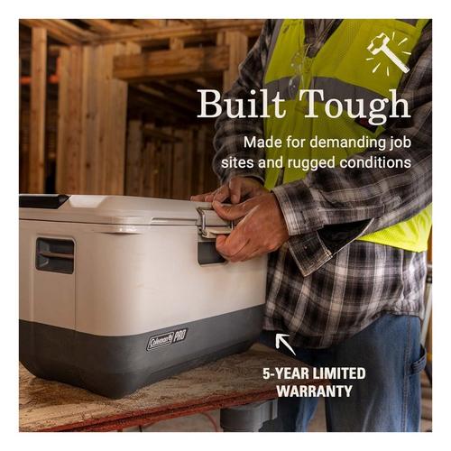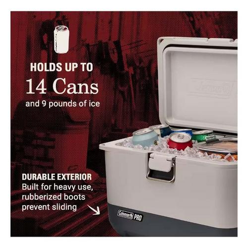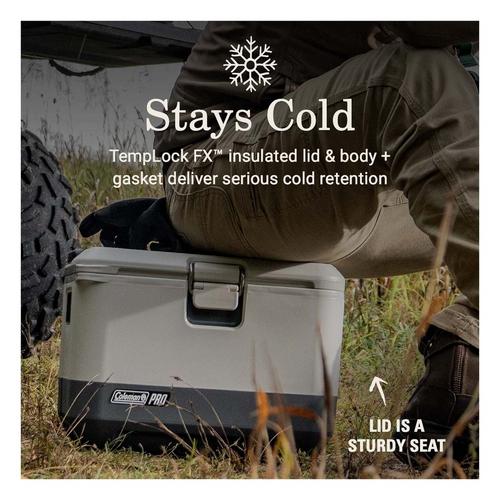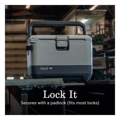 Coleman Pro is gear that works hard like you. It is purpose-built for everyday use in the most demanding environments. The Coleman Pro 17 Qt. Hard Cooler will keep your lunch and drinks cold, thanks to a TempLock FX full-insulated body and lid with a gasket to help keep the cold inside. A durable exterior with rubberized boots helps prevent it from sliding around in the bed of your truck. And an antimicrobial treatment to the interior helps protect it from odor causing bacteria. Gear up with confidence knowing this Coleman cooler comes with a 5-year limited warranty. Work smarter, not harder with clever additions like a flat top that can be used for writing work orders and room for a lock to secure your goods. Plus, this outdoor cooler supports up to 300 lbs. so you can use it as a seat. Antimicrobial properties are built in to protect the product from odor causing bacteria. The product does not protect users or others from disease causing bacteria. Always clean this product thoroughly after each use.