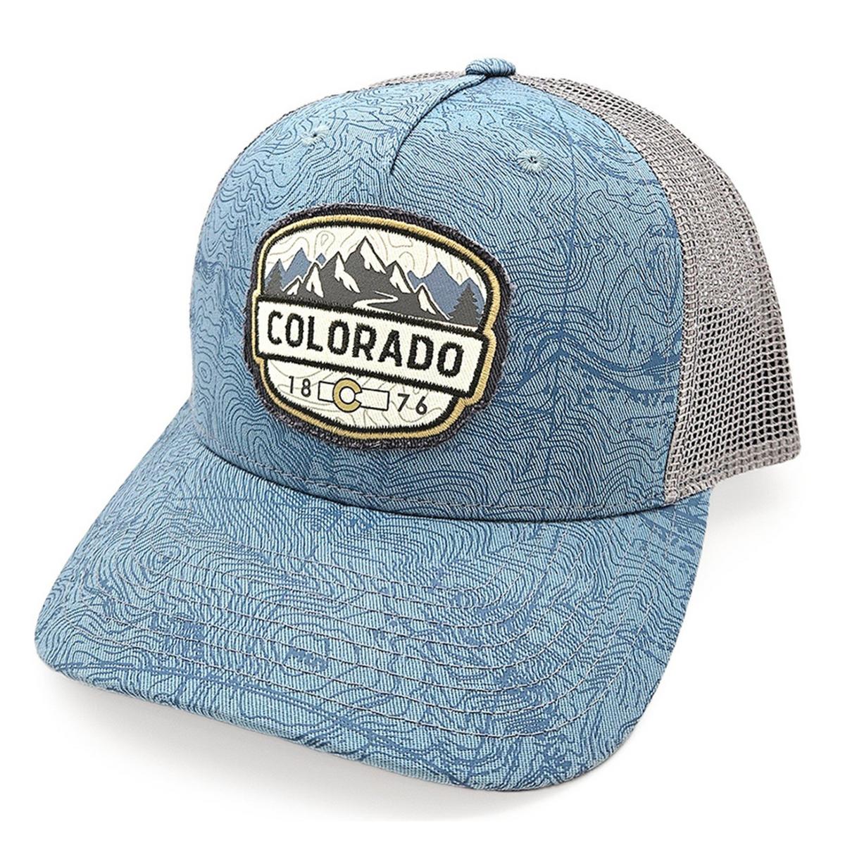 Conquer the great outdoors in style with our Contour Trucker Hat. The frayed twill applique adds a unique touch, while the adjustable snapback ensures a perfect fit. Available in a green and blue topo design, these hats are perfect for any outdoor adventure. Channel your inner adventurer and keep the sun out of your eyes with this must-have accessory. Structured trucker hat with topo map screenprinted on front panels.