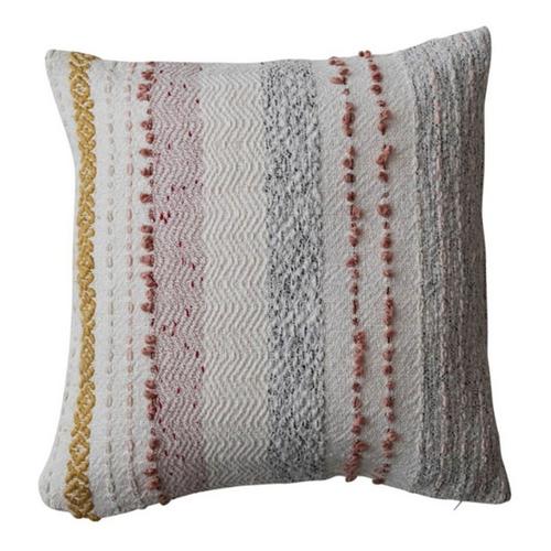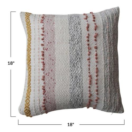 Creative Co-Op 18" Square Woven Cotton Blend Pillow w/ Stripes & Embroidery