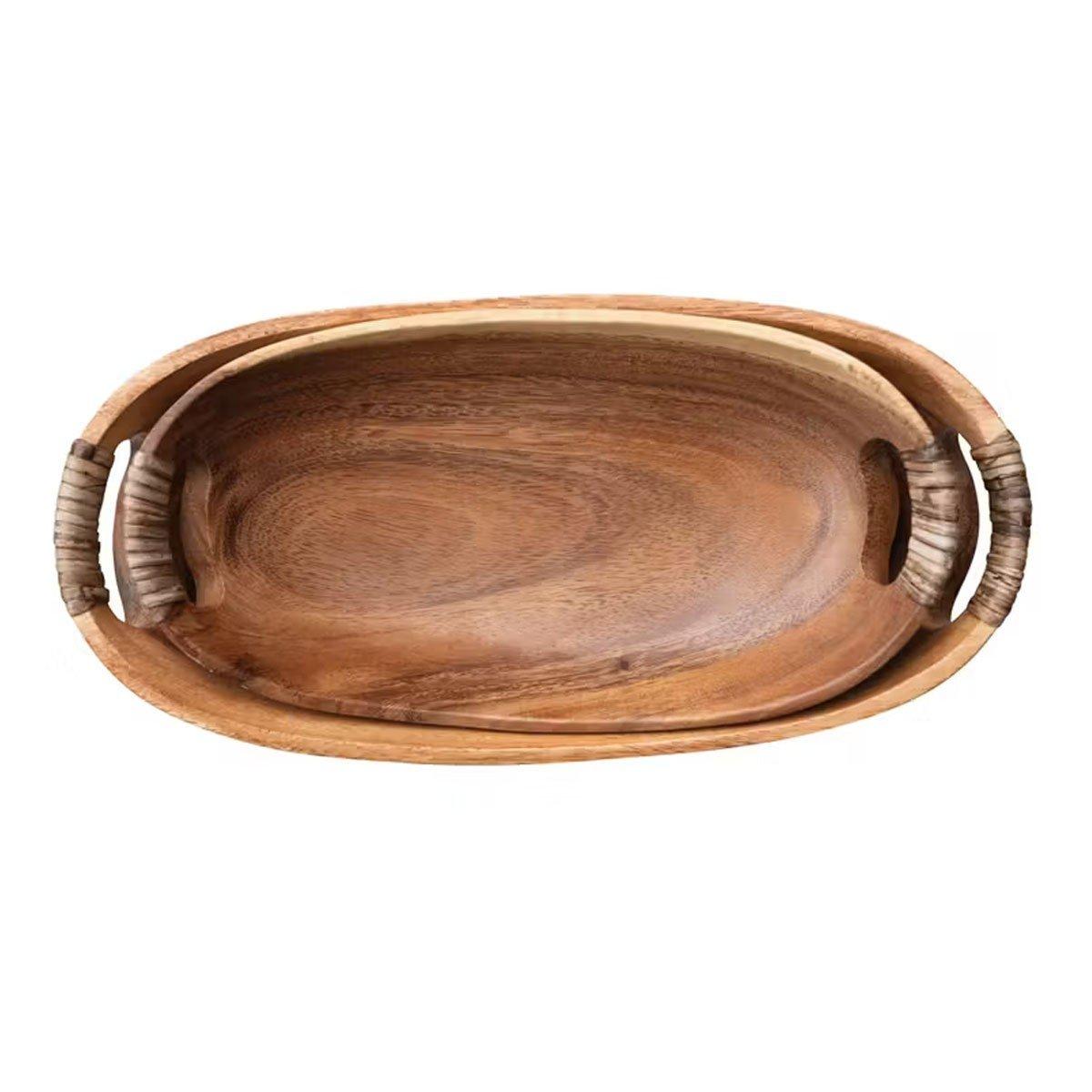 Creative Co-Op Acacia Wood Bowls with Rattan Wrapped Handles