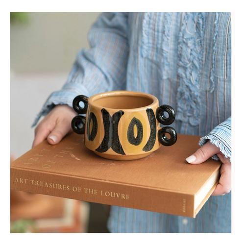 Creative Co-Op Hand-Painted Stoneware Planter w/ Handles