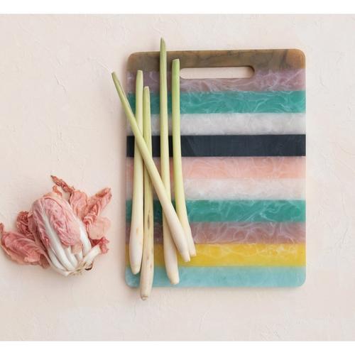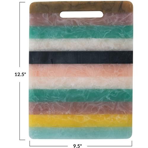 Creative Co-Op Marbled Resin Striped Cheese Serving Board with Handle (Each One Will Vary)