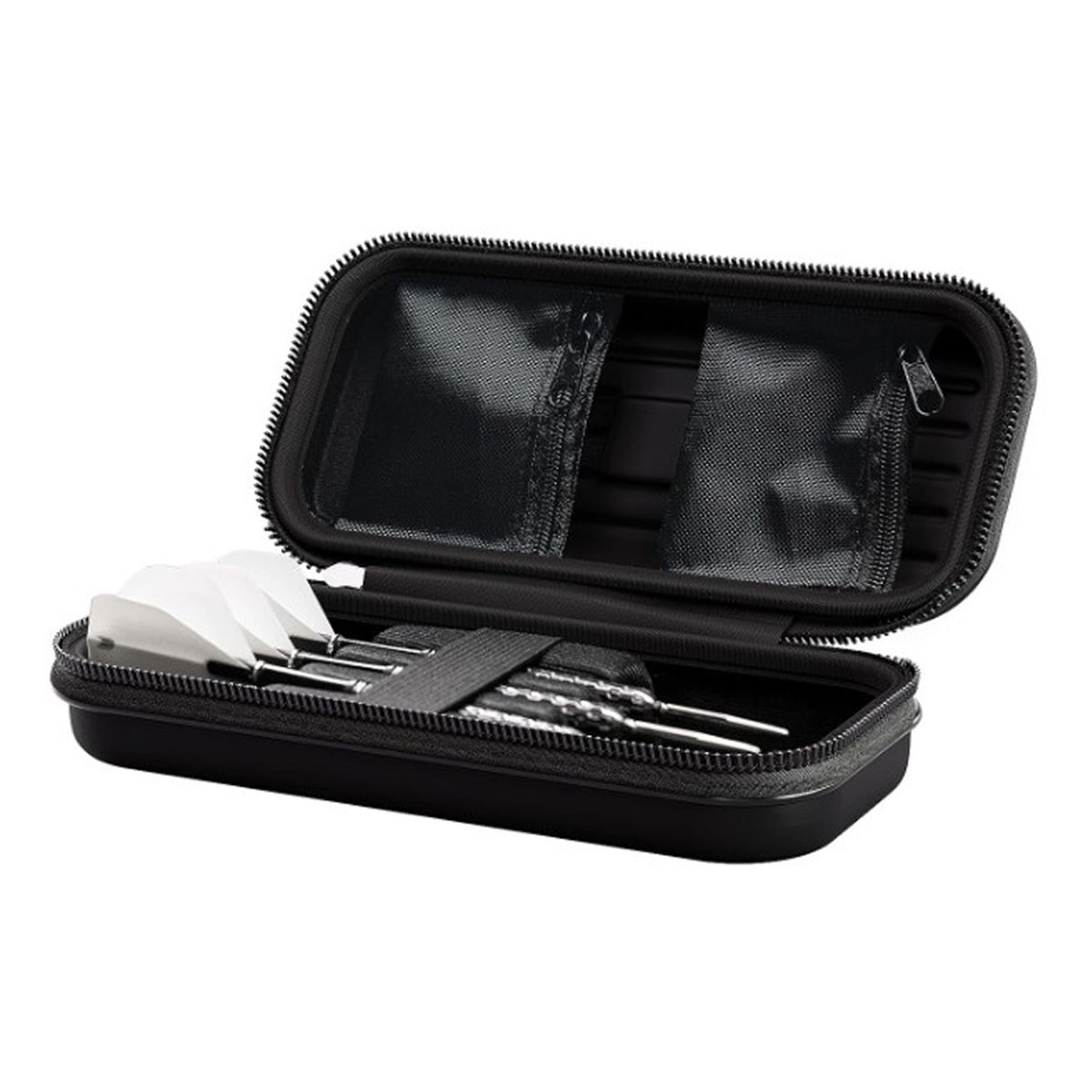 Takoma Style Wallet - A strong EVA material is used to maintain rigidity and give protection to the darts and accessories inside. While inside the wallet a velvet layer has been added for a soft feel and to be scratch resistant. Set of 3 Darts - The darts themselves are held fully assembled with an elastic strap on top to prevent movement inside. Double Zip Lock - The wallet is thick enough to ensure the flights don't become crushed. Inside the case are two zip locked pouches to hold spare accessories. Size – 18cm x 8.5cm x 5cm. Pack Contains - 1 x 3 Dart Size Wallet, no flights or Darts included