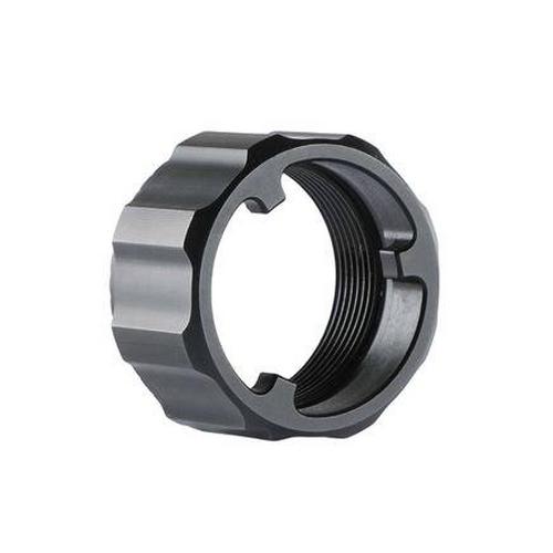 Replacement Compression Nut for KeyMo Adapters. For those of you who prefer to keep your own personal inventory of moving parts. This Compression Nut is the same part for all DA428 Keymo-HUB adapters DA451 Key-micro Adapters, It is also the same detent plate that ships with all Sandman series. Sandman Series, Sierra-5 KM, any other Keymo equipped silencer.