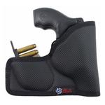 The Ammo Nemesis uses the same revolutionary materials as the original Nemesis and still sticks to the user's pocket "almost like fly paper." We added a compartment that can hold a single 38/357 ammo strip of extra ammunition to the rear of the gun compartment for small revolvers.