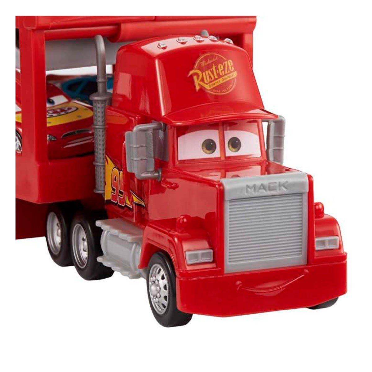 With Disney and Pixar Cars Mack Hauler vehicle, no racer gets left behind! This Mack is 13 inches long and can hold 12 character cars (sold separately). Open the back of his carrier to load and unload; the upper deck lowers to become a long ramp for easy access to the top. When everyone's loaded, push to get the adventure rolling! Kids and Cars fans can recreate favorite scenes and make up new adventures as they let their imaginations wander the open road! Colors and decorations may vary.