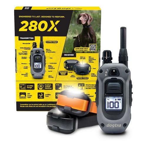 Effortlessly control and gain total attention with the 280X 2-DOG UNIT, the new generation of the trusted 282C e-collar. Its intuitive design and front-and-center command button ensure you never miss a teaching moment. With tone, vibration, and BOOST for faster recall and focus, the 280X 2-DOG UNIT also includes an easy-to-spot e-collar light and level lock for safety. Fully waterproof and drop-proof, it's perfect for any adventure.